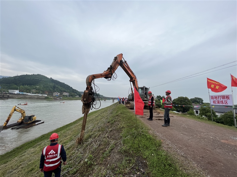 5月11日上午,根據(jù)市、區(qū)防指的統(tǒng)一部署,宣城市暨宣州區(qū)2023年防汛搶險實戰(zhàn)演練活動在朱橋鄉(xiāng)北山港口舉行,共27支抗洪搶險隊參與演練活動。演練內(nèi)容包括打樁、加子埂、反濾圍井、開溝導滲、水下?lián)岆U、水上編隊航行和人員搜救轉(zhuǎn)移演練。安徽鰲峰建設集團有限公司搶險隊共10人參加陸地鋼板樁演練。